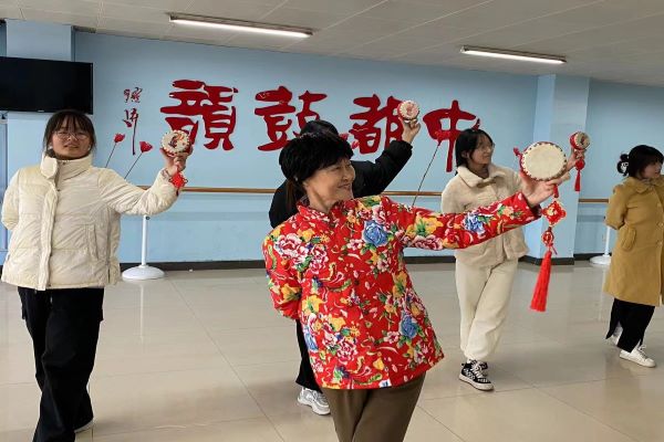 多年来孙凤城老师作为我校特聘教授,持续关注我校凤阳花鼓的传承,身体力行的践行着传承使命,在教授凤阳花鼓表演技艺的同时,不断向青年大学生传递中华优秀传统文化的精神内涵和时代使命。丹凤朝阳、双面打鼓、凤凰展翅、凤凰三点头等花鼓动作,在孙老师的悉心指导下鲜活起来,同学们的表演动作变得更加优美动人,表演技术得到了有效的提升。