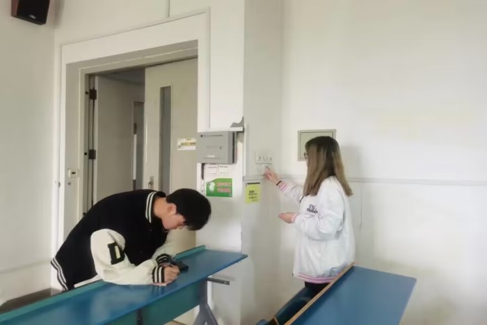 在本次排查活动中,学生会工作人员对各个教室的电扇、电灯等电器逐一检查,记录下每一盏不亮的灯、每一台有问题的电扇并反映到相关部门,为同学们提供更加舒适的学习环境。