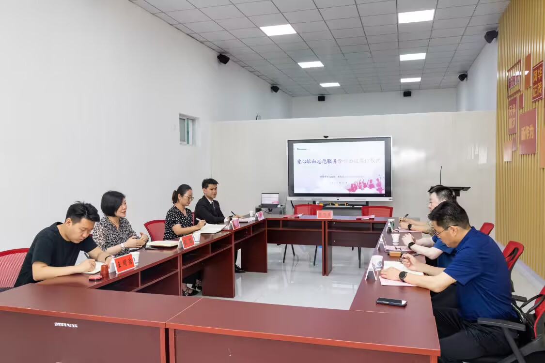 在2023年世界献血日来临之际,为进一步学习宣传贯彻党的二十大精神,激励广大青年学生关爱生命、乐于奉献, 6月1日,校团委与蚌埠市中心血站爱心献血志愿服务合作签约仪式在凤阳校区青年之家举行。校团委书记张聪,蚌埠市中心血站站长董柱出席活动并进行签约。