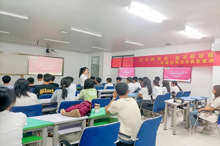 6月16日,2022年安徽省优秀共青团员刘馨怡应邀为青马班学员、团员及入团积极分子开展“学习二十大 永远跟党走 奋进新征程”优秀青年典型宣讲。宣讲会由建筑学院团委书记沈德艳主持。