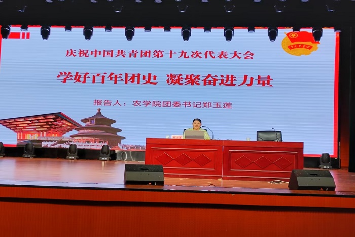 农学院团委书记郑玉莲应邀作开班第一讲,“学好百年团史,凝聚奋进力量”专题报告。报告从“在革命性磨砺中奋进的中国共青团”“新时代中国青年的使命担当”“组织青年争当中国式现代化建设的主力军”和“汇聚起构建人类命运共同体的青春力量”等四个方面对中国青年运动进行了阐述,对团的十九大精神进行了解读。郑玉莲表示,入团积极分子要坚持以习近平新时代中国特色社会主义思想为指导,自信自强、守正创新,踔厉奋发、勇毅前行,争做有理想,敢担当、能吃苦、肯奋斗的新时代好青年,坚定不移听党话、跟党走,把牢走中国特色社会主义道路、为共产主义远大理想不懈奋斗的政治方向,让青春充满真理,让真理在青春的奋斗中迸发更强劲的力量。