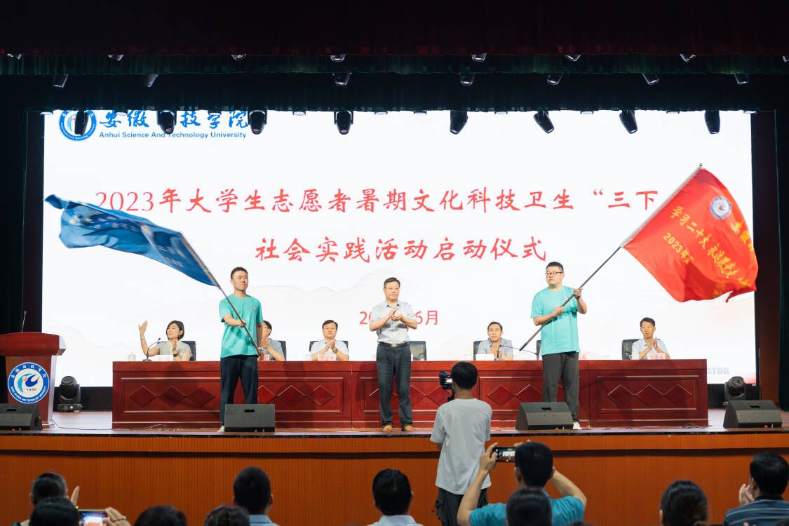 黄远友为本科生、研究生社会实践团队授旗,并宣布半岛app官方在线入口2023年暑期社会实践启动仪式正式启动。
