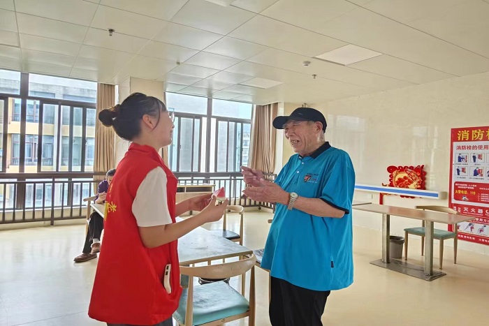 陪伴是最长情的告白。才艺表演结束后,志愿者与老人们话起了家常,讲讲养生小知识,分享大学生活中的奇闻趣事,老人们也时不时地鼓励志愿者好好学习,做社会主义现代化建设的有用之人。
