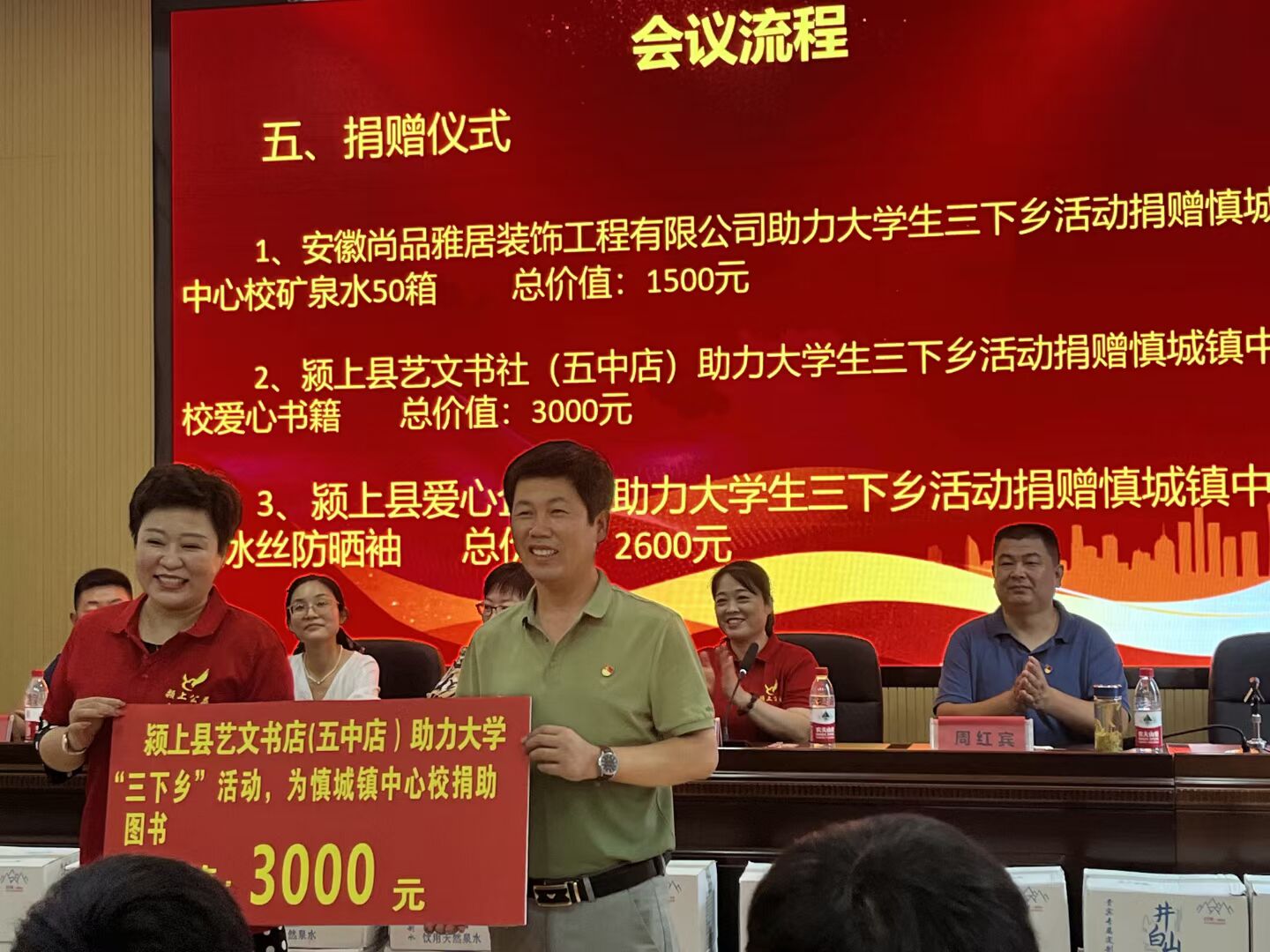 仪式上,建筑学院学生代表、“星星梦之队”实践团队长王健伟发言;当地企业和个人为助力大学生“三下乡”活动,向慎城镇中心学校捐赠了图书、防晒袖套和矿泉水等爱心物品。