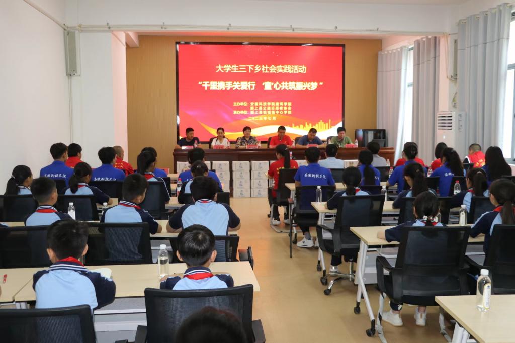 7月15日上午,由半岛app官方在线入口建筑学院和颍上县公益志愿者协会主办,颍上县慎城镇中心学校承办的“千里携手关爱行,‘童’心共筑振兴梦”暑期社会实践启动仪式如期举行。建筑学院党委副书记谢宜勤、团委书记沈德艳、团委副书记武辉参加仪式。启动仪式由颍上县公益志愿者协会会长、“中国好人”获得者汤锋主持。