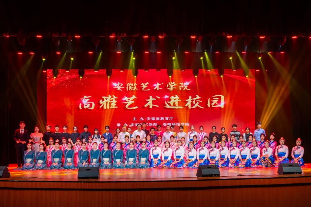 9月27日,由安徽省教育厅主办的2023年“高雅艺术进校园”活动在我校凤阳校区大学生活动中心举行。安徽艺术学院党委书记韩军,安徽艺术学院纪委书记宣扬,我校党委委员、副院长黄远友,党委委员、党委宣传部部长何永勇,校团委书记张聪与我校千余名师生共同欣赏了由安徽艺术学院带来的大型文艺展演。