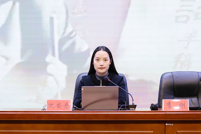 为引领青年学生学习贯彻习近平新时代中国特色社会主义思想,增强政治素养,提升思想境界,12月27日下午,我校2023-2024学年“青年马克思主义者培养工程”大学生骨干培训班暨第九期团校第三讲在龙湖校区举行。马克思主义学院教师、校团委挂职副书记把安丹应邀走进“青马课堂”,为青年学生作“从毛泽东诗词中学习共产党史”专题宣讲报告,会议由校团委副书记李刚主持。