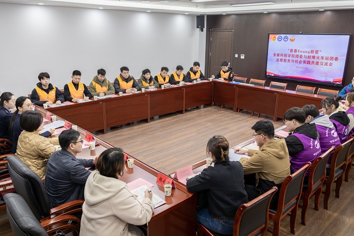 为深入贯彻落实习近平总书记关于青年工作的重要思想,丰富志愿服务育人内涵,3月13日,校团委与中国铁路上海局集团有限公司蚌埠站团委在龙湖校区西辅楼225会议室召开志愿服务与社会实践共建交流会。