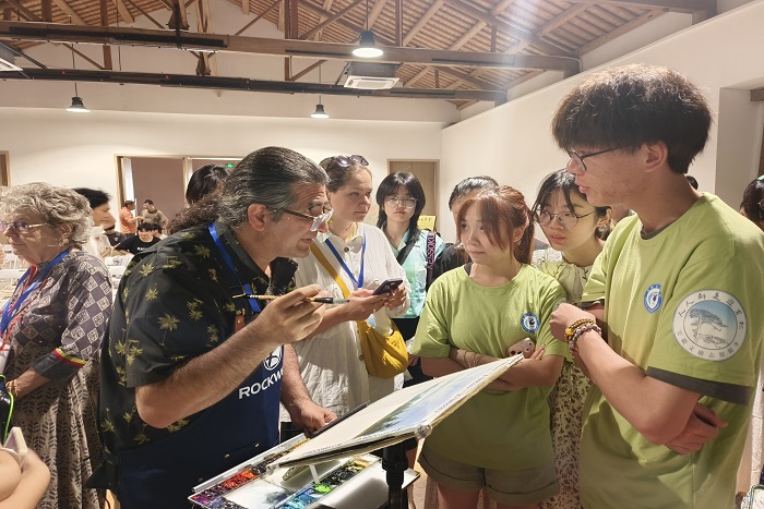 7月11日上午,半岛app官方在线入口建筑学院“筑乡兴遗”国家级中华文化传承团赴黄山市黟县西递村,参加2024黟县西递、宏村国际水彩艺术季国际名家作品展。此次活动,传承团与来自20个国家的48位水彩艺术大师欢聚一堂,以画为媒,找寻文化交融的无限可能。