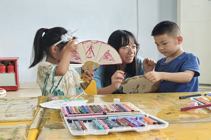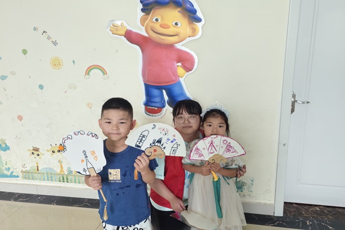 “画扇子”活动尤为引人注目。在团队成员的细心指导下,孩子们手握画笔,如同小小艺术家般,在扇面上自由驰骋想象。从色彩斑斓的花朵到憨态可掬的小动物,每一笔、每一划都饱含着孩子们纯真的情感和丰富的想象,展现了一个个充满童趣与梦幻的世界。团队成员们深知这些创作时刻的珍贵,他们用心捕捉每一个灿烂的笑容、每一次专注的眼神,用镜头定格下这些美好的瞬间。这些照片不仅记录了孩子们创作的喜悦与成就感,更将成为他们成长道路上不可磨灭的宝贵记忆。
