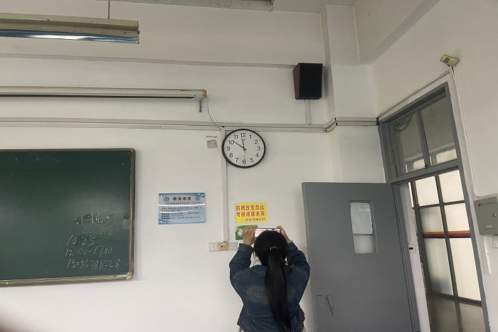 活动中,校学生会工作人员分小组前往教学楼开展排查,认真检查核实各教室时钟走时是否准确,时钟是否停摆等情况,并拍照记录。排查发现,教学楼大部分时钟走时情况正常,个别时钟因缺电停摆,对停摆时钟已反馈给学校相关部门维修更换。