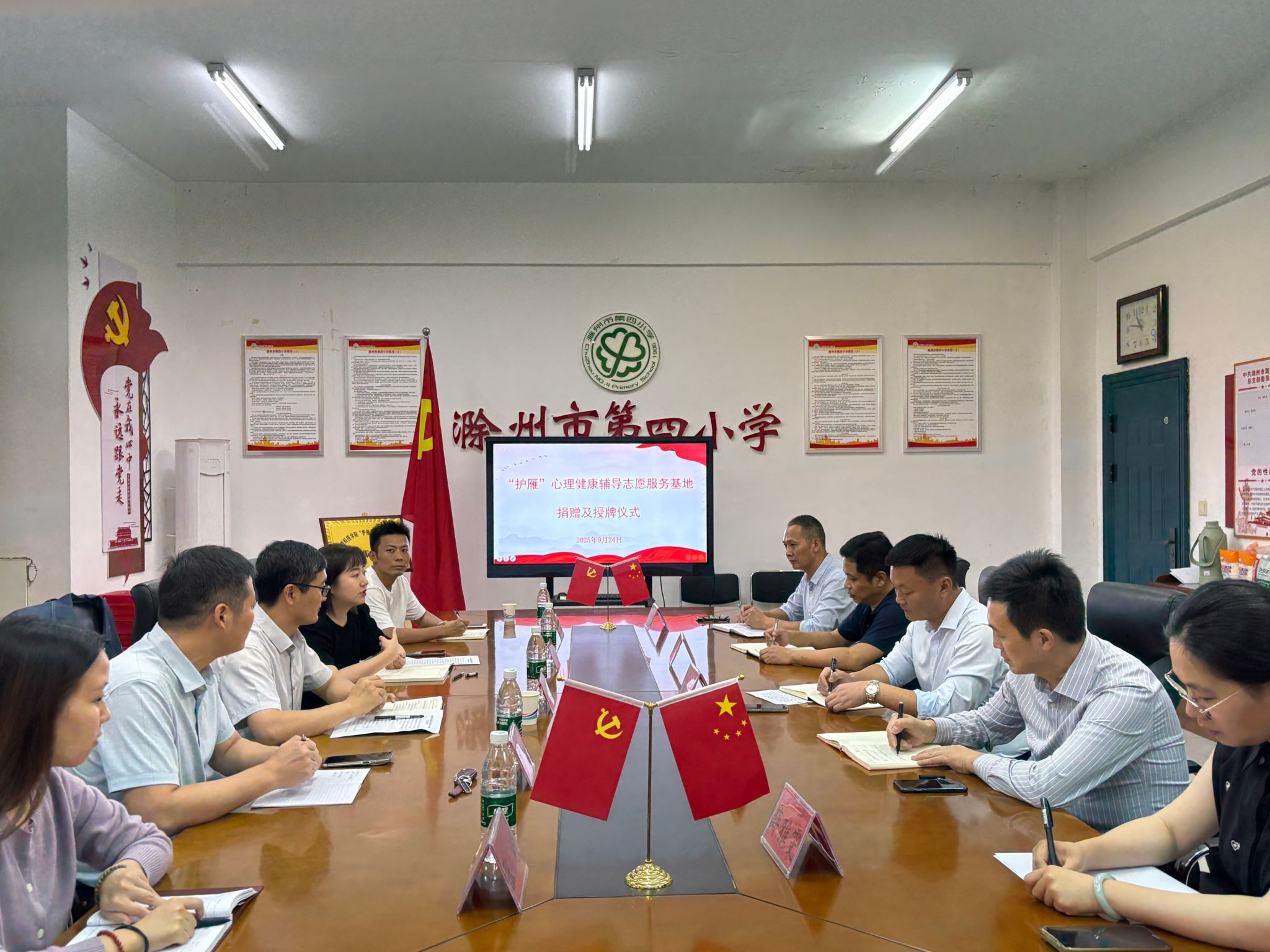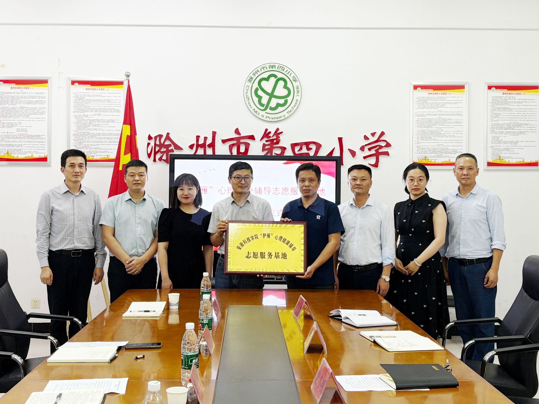 为深入学习贯彻习近平总书记关于弘扬雷锋精神的重要论述,切实将雷锋精神的时代内涵转化为校地协同育人的实践行动,充分发挥共青团桥梁纽带作用,9月24日下午,我校团委联合团南谯区委在滁州市第四小学举行“‘护雁’心理健康辅导志愿服务基地”揭牌仪式。校团委副书记李刚、团南谯区委书记徐迟,南谯区教体局分管领导、滁州市第四小学主要负责同志等参加仪式。