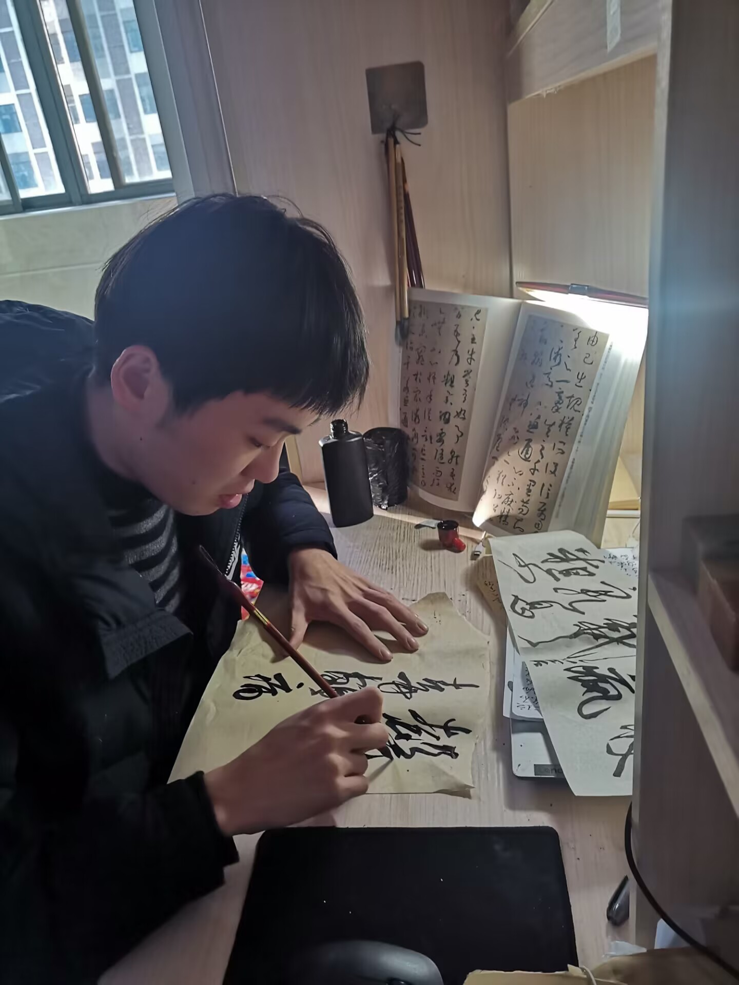 陶乐乐对学习充满热情,善于钻研,乐于将所学的知识融汇贯通并总结出一套自己的学习体系来丰富自己的学识境界。他具有丰富的想象力和创造力,在团队设计专利“数字化供水业务服务平台”的过程中,他提出了用“高斯曲线模型”和“数学方位视角”来解决其中一项有关客户体验感提升方法的问题。他曾以个人名义参加了“第二届安徽省大学生品牌创意设计大赛”A类赛事,并取得了省一等奖。他还十分痴迷于书法艺术,尤爱晋唐时期的潇洒书风。在任职“半岛app官方在线入口书美协会副会长”期间,他举办了书法知识竞赛、书法创作分享大会、书法艺术展等多项活动,除此之外,他还计划申请加入中国书法协会。