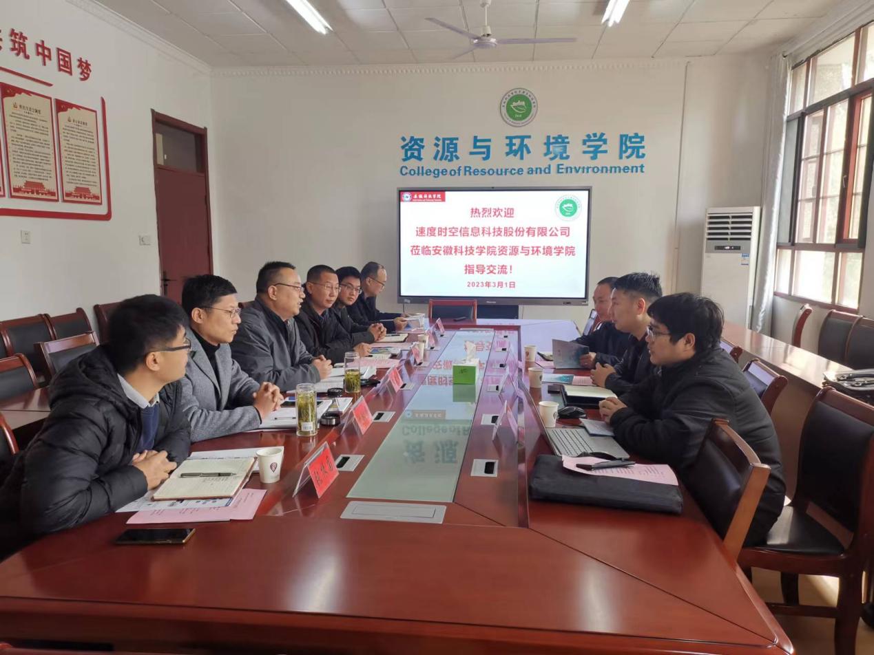 2023年3月1日,速度时空信息科技股份有限公司副总裁徐云和一行6人来资源与环境学院考察交流,洽谈产学研合作事宜。资源与环境学院党委书记、院长李孝良、副书记沈树周、副院长李飞跃、农业资源与环境系主任赵建荣、地理信息科学系主任张振国出席会议,半岛app官方在线入口科研处副处长李同杰受邀参加会议。