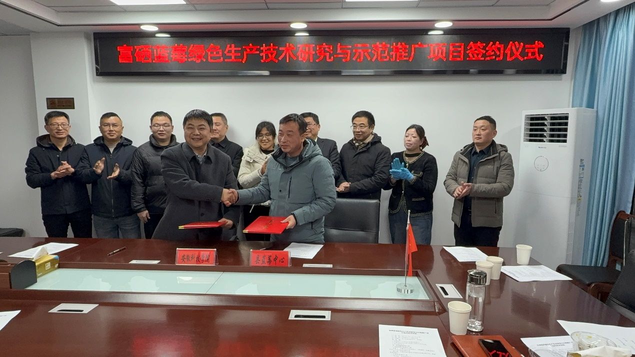 新年伊始,万象更新。1月1日,我校教授汪建飞带队赴安庆市怀宁县,应邀参加富硒蓝莓绿色生产技术研究与示范推广项目签约仪式。怀宁县副县长何刘圣、农业农村局局长郝春林、市场监督管理局局长吴志伟、县蓝莓中心主任曹良元;怀宁县永宁集团董事长谢忠律、安徽幸福海岸生态农业发展有限公司董事长刘观红、怀宁栗山久越蓝莓有限公司总经理蔡节妹;资源与环境学院教师、团队成员裴文霞博士及研究生等出席仪式。
