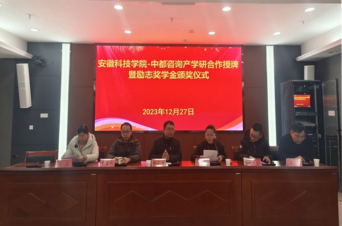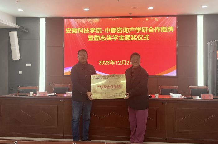 12月27日下午,财经学院举办产学研合作授牌暨中都咨询优秀奖学金颁奖仪式。凤阳县中都项目咨询有限公司总经理刘芳、总工程师朱永亮,财经学院党政领导、骨干教师、辅导员、学生代表等参加活动。仪式由财经学院党政办公室主任张俊主持。