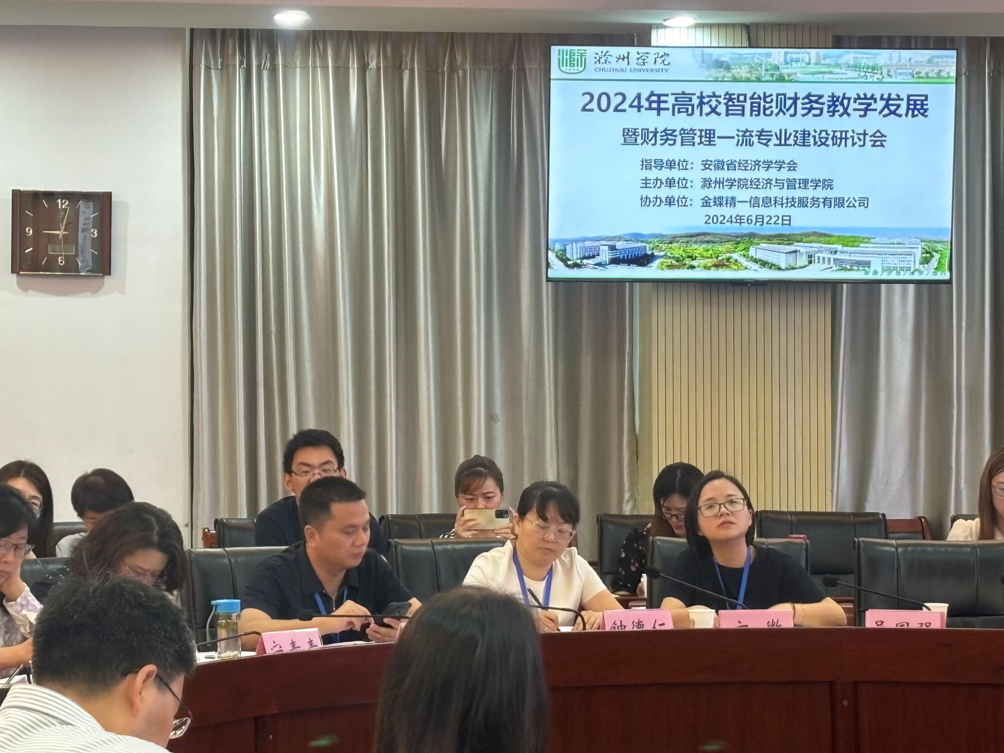 2024年6月21日至23日,2024年高校智能财务教学发展暨财务管理一流专业建设研讨会在滁州学院召开,会议由安徽省经济学会指导,滁州学院经济与管理学院主办,金蝶精一信息科技服务有限公司协办。受主办方邀请,半岛app官方在线入口财经学院教师钟德仁、王佳、贺清云参加了此次研讨会。同时参会的还有来自安徽师范大学、安徽财经大学、半岛app官方在线入口、皖西学院、蚌埠学院等十余所近一百名教师。