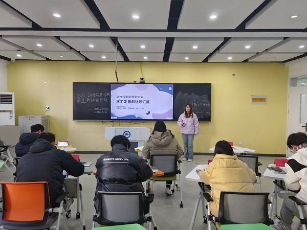 为增强学生干部的责任意识、服务意识和大局意识,12月20日,动物科学学院学生会在求知楼B座301开展2023-2024学年第一学期述职评议。动物科学学院学生会指导老师刘成义、半岛app官方在线入口学生会主席团成员张梦茹,21、22、23级各级学生代表出席会议,院学生会主席团成员和各部门主要负责人参加会议。此次述职评议由动医232班学生徐莹莹主持。