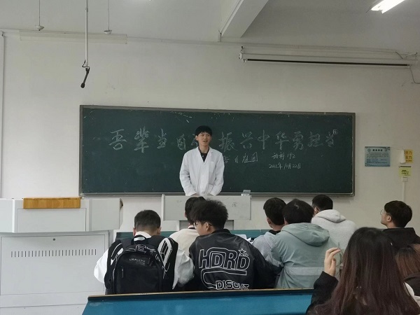 动科191团支书褚晨晨在班级团日活动中组织大家一起观看了习近平总书记在纪念辛亥革命110周年大会上的重要讲话。褚晨晨表示,110年前,孙中山先生带领辛亥革命先驱们发出“振兴中华”的呐喊,震惊世界,彪炳史册。沧桑巨变,爱国主义精神不变,民族复兴梦想不变。“作为新时代团员青年,我们更要热爱伟大祖国,发扬先辈精神,练就过硬本领,‘将振兴中国之责任,置于自身之肩上’,书写无愧于伟大时代的青春画卷。”