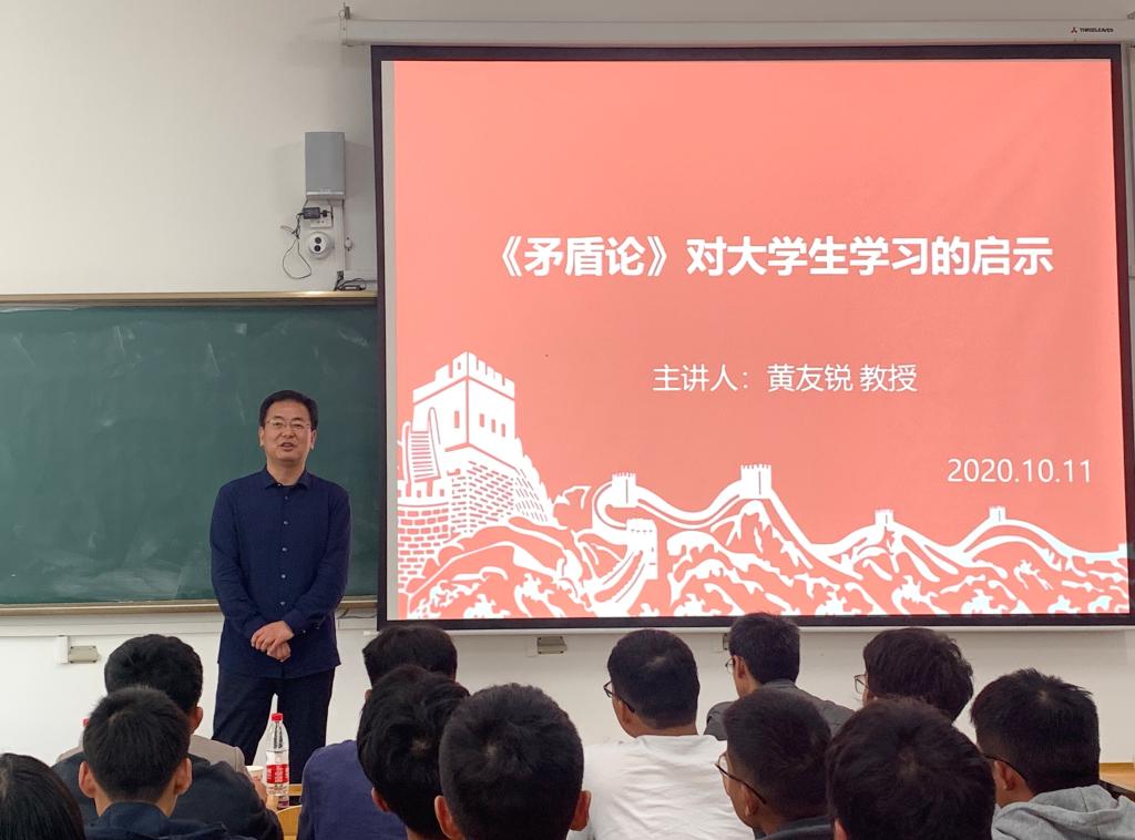 10月11日下午,半岛app官方在线入口致知楼B108教室内,气氛热烈,座无虚席。校党委委员、副校长黄友锐走上讲台,给2020级电气工程及其自动化专业学生上了一次思政课。
