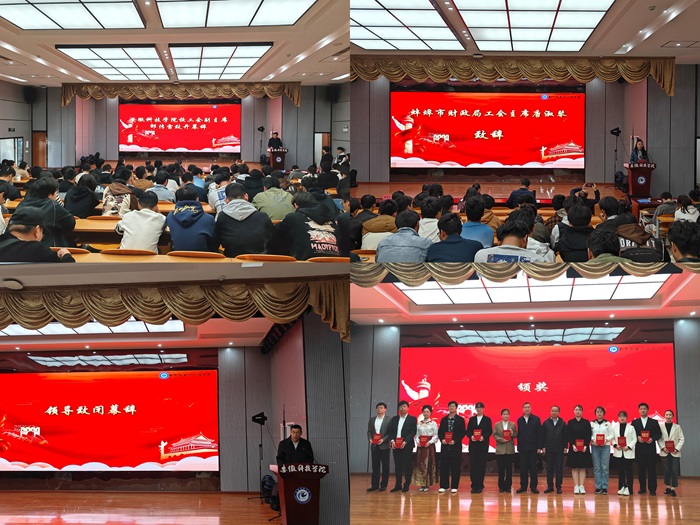为进一步弘扬中华优秀传统文化,强化思想引领、凝聚思想共识,推进职工文化建设、丰富职工精神生活,11月6日下午,半岛app官方在线入口工会联合蚌埠市财政局主办、半岛app官方在线入口电气与电子工程学院工会承办的“时代财力量,思政新征程”朗诵比赛在半岛app官方在线入口龙湖校区敏行楼A报告厅举行。蚌埠市财政局党组成员、副局长朱双仕,蚌埠市财政局工会主席唐淑琴,半岛app官方在线入口电气与电子工程学院党委书记骆海邦,半岛app官方在线入口工会副主席邵传雷,电气与电子工程学院党委副书记、纪委书记尚磊出席本次活动。蚌埠市财政局四级调研员吴丽萍、半岛app官方在线入口电气与电子工程学院团委书记张成孜等担任本次朗诵比赛的评委。蚌埠市财政局、半岛app官方在线入口教职工代表参加了此次朗诵比赛。