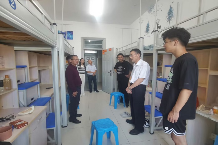 为全面了解新生入校情况,帮助新生尽快适应新环境新生活, 6日下午,骆海邦、夏显明、尚磊等学院党政领导带领新生辅导员深入学生宿舍看望新生。