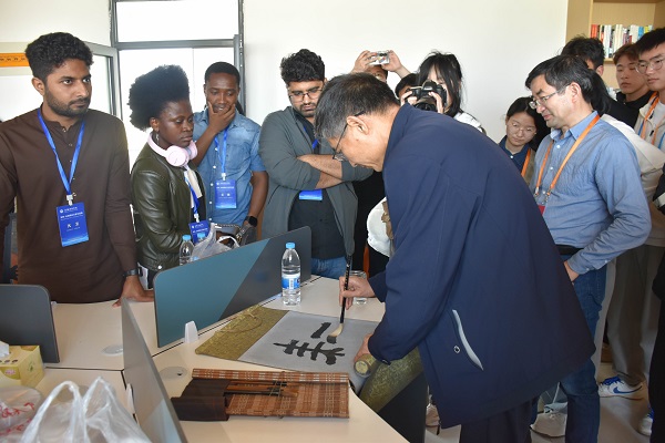 在经过上午“两馆、一校”的参观活动后,参与“大篷车”活动全体人员围坐在由半岛app官方在线入口与南京农业大学和小岗村党委共建的“耕读书屋”中,开展座谈交流。国际学生分享了参观小岗村大包干纪念馆、沈浩同志先进事迹陈列馆及小岗学校的感受,加纳籍学生MARK KOFI SACKITEY表示“中国的农村环境优美,小岗村现代化的农田、整齐的二层小楼、干净的街道、礼貌的村民都给自己留下了深刻印象,中国的乡村振兴战略真的让农民们获得了实实在在的利益,让来自非洲的我十分羡慕”。巴基斯坦籍国际学生ZAIN ABBAS感慨道“小岗村在40年间发生了翻天覆地的变化,让我非常震撼。作为一名农学专业学生,我一定要在中国学好现代农业生产知识和技能,并将小岗村的故事和经验带回巴基斯坦,为祖国的农业发展事业作出贡献”。支教团、直播团的大学生也纷纷踊跃发言,讲述了自己通过参与小岗支教、直播等活动所获得的提升和感受。随后,半岛app官方在线入口小岗办负责人通过“说文解字”的形式,用毛笔书写并分析“耕”等汉字,展现了中国汉字的优美造型,解读中国古代农业的博大精深,国际学生跃跃欲试,纷纷拿起毛笔在纸上书写下自己的中文名字,体验了中国汉字的无穷魅力。(特约通讯员:于卉 审核:陈德用)