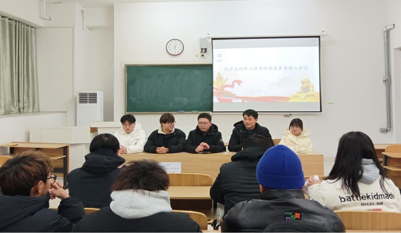 为做好化学与材料工程学院学生会指导老师交接工作,学院于12月18日在致知楼C109召开学生会负责人会议。学生会前指导教师沈竞成、新任指导教师宇春虎出席会议,学生会主席团及各部门负责人参加会议。本次会议旨在增进学生会指导教师与各部门负责人之间的了解,深化对各部门工作内容的熟悉。