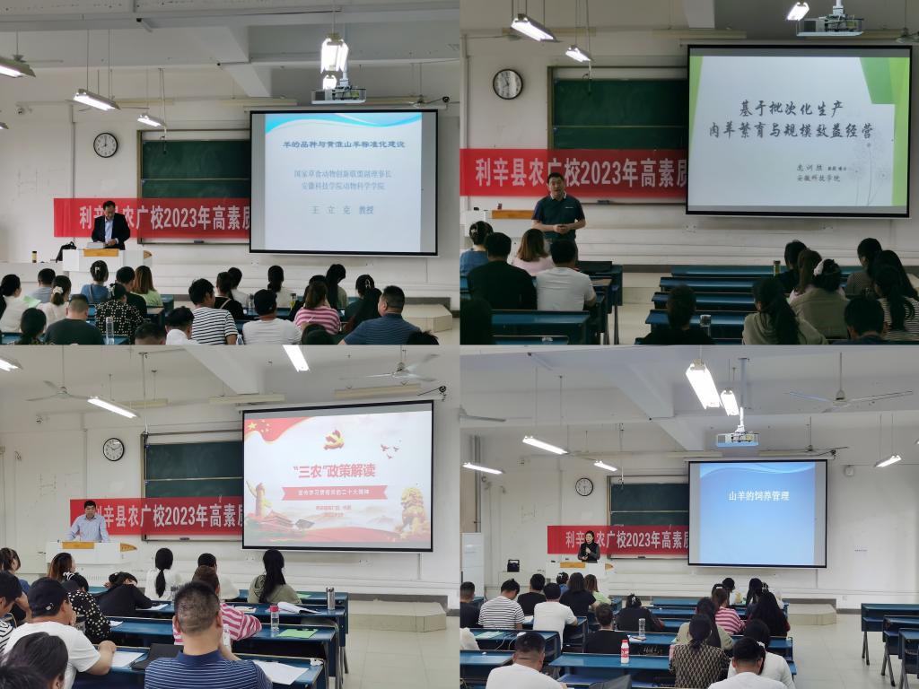 为了培养造就一批综合素质高、经营管理能力强、养殖技术过硬的黄淮山羊养殖专业家庭农场主,示范引领广大农民发展黄淮山羊养殖,发展地方优势农产品品牌,带动农民增收致富,促进农业扶贫产业转型升级、农村面貌的持续改变、农民素质不断提高,4月17日至19日,2023年利辛县高素质农民黄淮山羊养殖专业培训班在半岛app官方在线入口第一报告厅开班,继续教育学院党支部书记、院长杨维来,利辛县农广校副校长李明,利辛县农广校工作人员、村干部、养殖合作社成员共60余人参加了开班典礼。