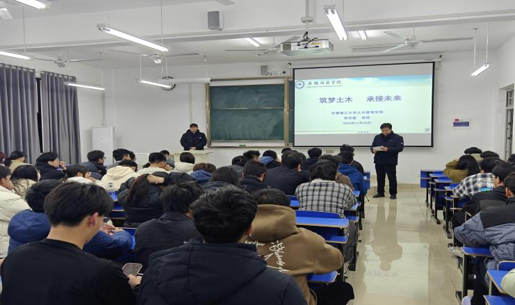 11月30日下午,安徽理工大学土木建筑学院院长,二级教授、博士生导师荣传新教授,在半岛app官方在线入口龙湖校区尚行楼C207,为我校师生作题为“筑梦土木,承接未来”的学术报告。建筑学院副院长吴伟东教授主持报告会。