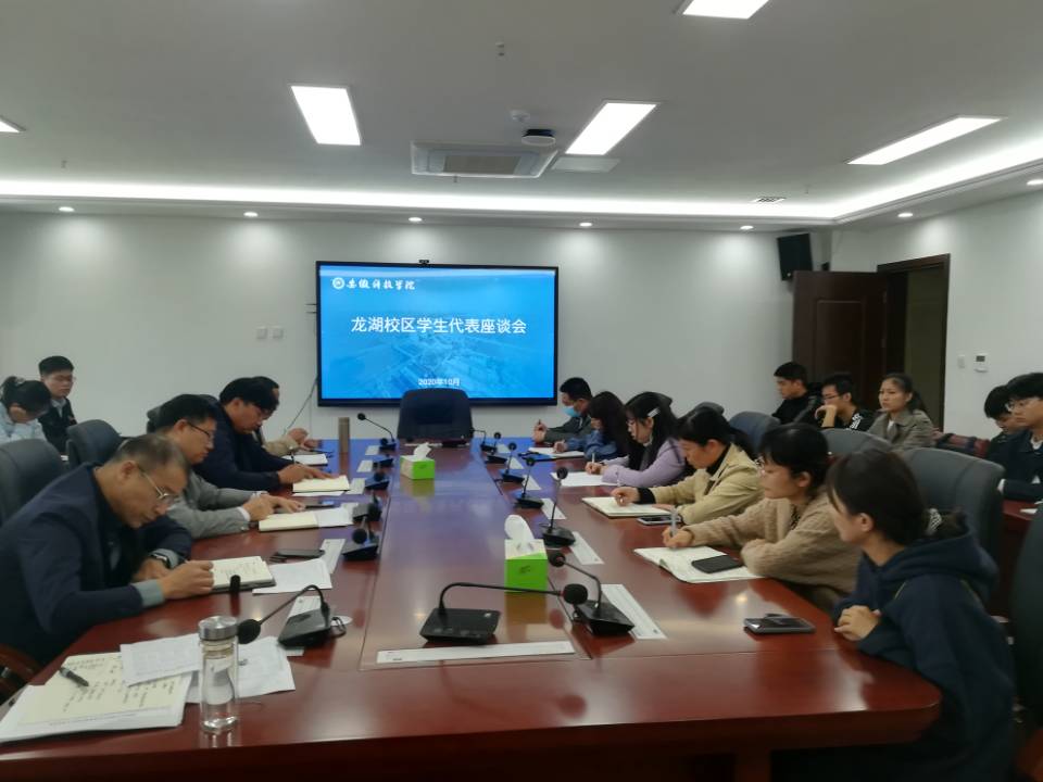 10月16日下午,龙湖校区召开学生代表座谈会。龙湖校区各二级学院22名学生和辅导员代表,教务处、学生处、保卫处、后勤保障部等部门同志参加座谈,座谈会由龙湖校区综合管理办公室副主任姚文均主持。