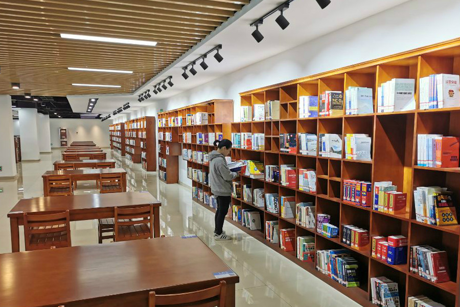 龙湖图书馆内部建设分2期进行,2020年一期建设2-7层,目前先期开放试运行2-4层,11月底前陆续开放5-7层空间。