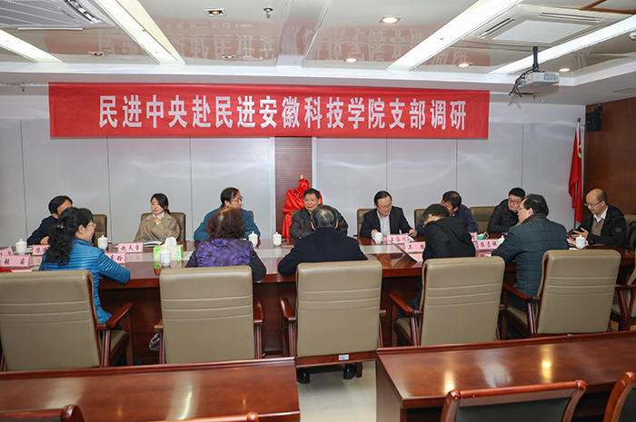 12月8日下午,全国人大常委会委员、监察和司法委员会副主任委员、民进中央副主席兼秘书长高友东率领民进中央调研组来到民进半岛app官方在线入口支部调研,省政协副秘书长、民进省委专职副主委王容川,民进安徽省委秘书长高国友,民进蚌埠市委主委秦志华,我校党委书记蒋德勤等陪同调研。