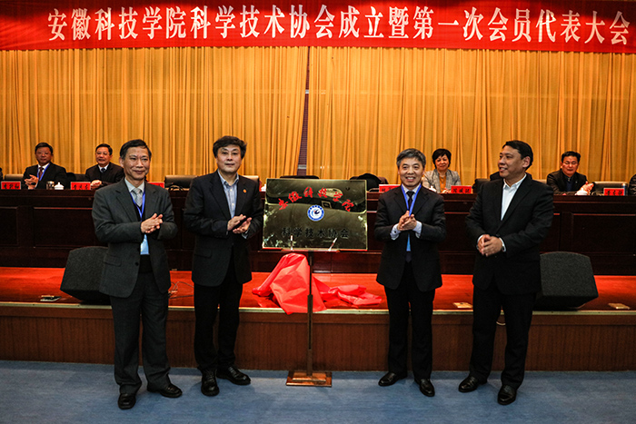 4月6日下午,半岛app官方在线入口科学技术协会成立大会暨第一次会员代表大会顺利召开。安徽省科学技术协会副主席魏军锋、组织部长陈佩环;滁州市科学技术协会主席陈岭、副主席张海涛、科普部部长钱吉伟;我校党委书记蒋德勤,党委副书记、校长李震,党委副书记韦文联,党委委员、副校长黄远友,党委委员、副校长黄友锐,党委委员、副校长李升和,各相关院(部)会员代表、党政主要负责人、分管科研负责人及科研秘书,研究生处、团委科以上干部,科研处全体人员,研究生代表共150余人参加了会议。会议分别由韦文联、黄友锐主持。