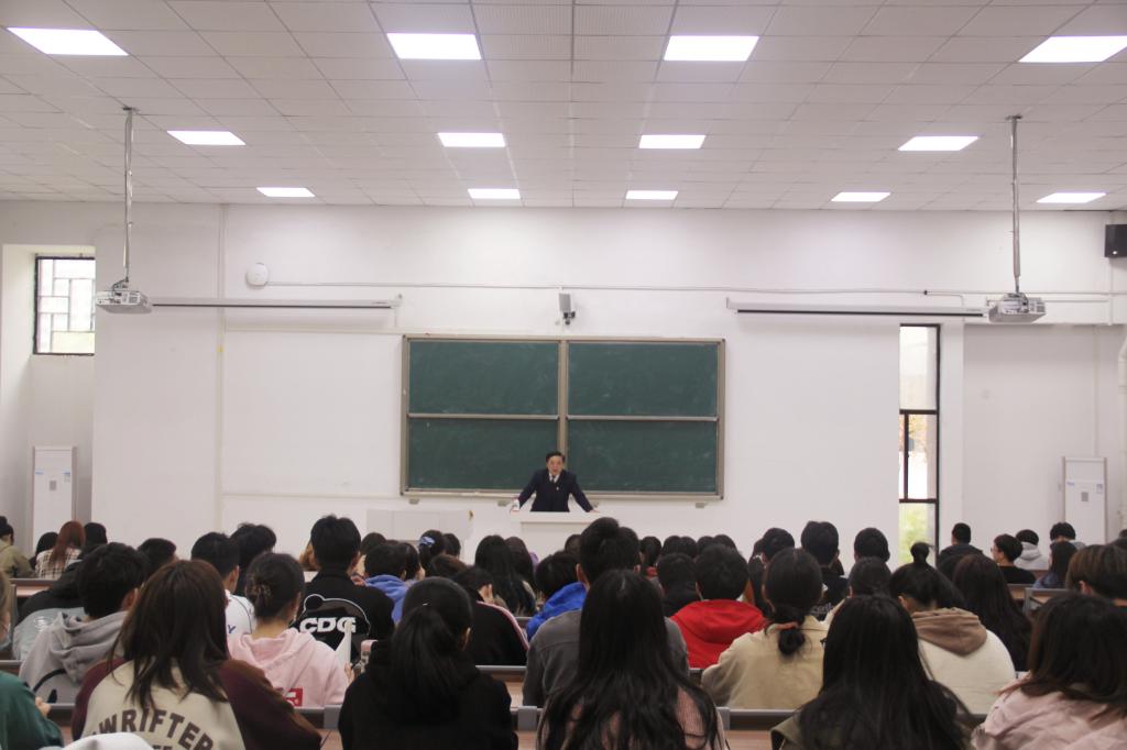4月7日下午,校党委副书记韦文联应邀在龙湖校区为管理学院2018级全体在校大学生作党史学习教育专题讲座。