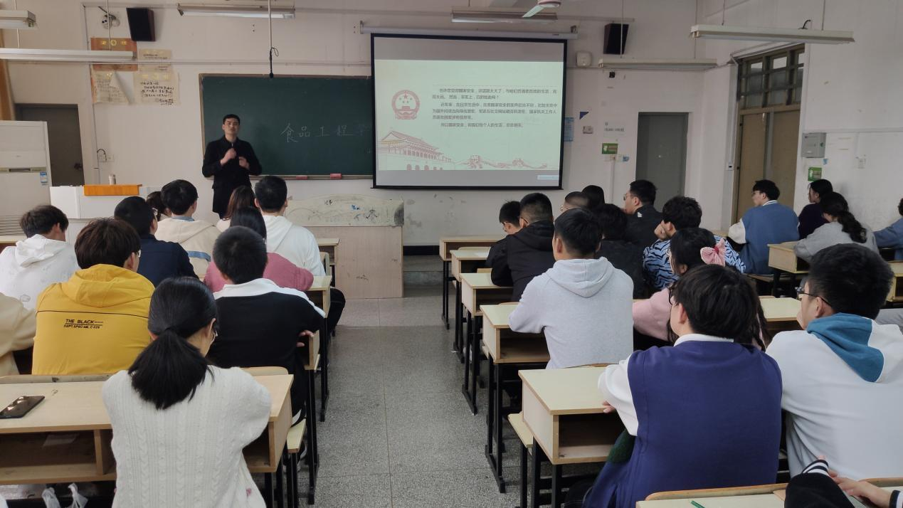 万名师生同上一堂国家安全课。宣传动员学生通过集中观看、小组观看、个人观看等形式线上学习由北京师范大学教授、国家安全与发展战略研究院执行院长汪明,哈尔滨工程大学核科学与技术学院党委副书记刘铁,北京航空航天大学飞行学院2018级本科生余汉明共同讲授的《树立总体国家安全观,以实际行动维护和塑造国家安全》。同时,线下各班级积极举办主题班会,引导同学们热爱祖国,准确把握总体国家安全观,自觉提升国家安全意识,肩负起历史使命,为实现中华民族伟大复兴的中国梦不懈奋斗。