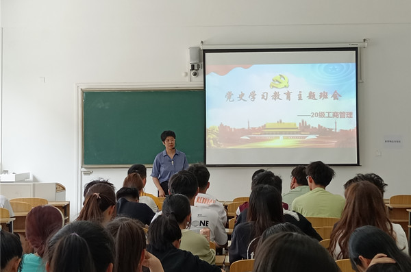 为进一步加强学生党史学习教育,引导青年学生树立唯物史观,完善大学生人格修养,激励同学们勇担中华民族伟大复兴时代使命,根据宣讲计划,6月7日上午,【辅导员开讲啦】第二期“学习党的光辉历史 做新时代奋斗者”由管理学院党委副书记陶漫主讲。宣讲会在龙湖校区致知楼C107举行,管理学院研究生支部党员和非毕业班本科生代表100多人参加。