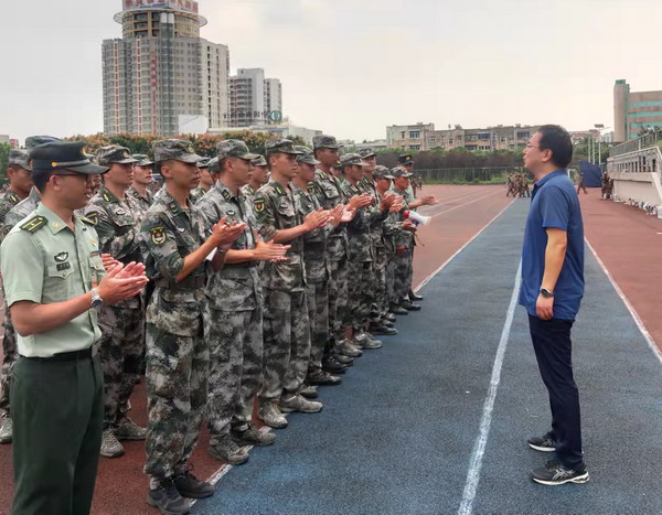 9月28日下午,校党委委员、副校长黄友锐在学生处处长、军训团政委何永勇等陪同下深入军训现场看望慰问军训教官,对军训教官的辛勤工作表示慰问和感谢。