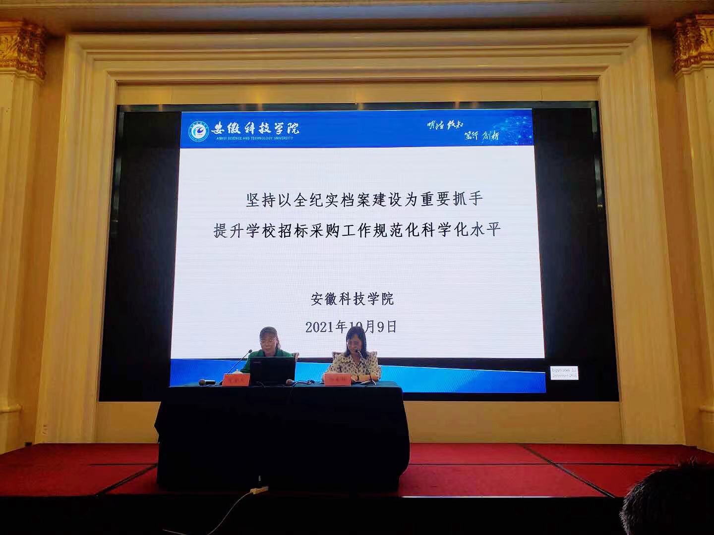 10月8日至9日,由安徽省教育厅主办的全省教育系统招标采购业务培训会在合肥召开,来自合肥工业大学、安徽大学、安徽师范大学等46所高校及省教育厅直属事业单位共100余人参加会议。我校国有资产管理处处长郑亚辉、副处长窦鹏,招标采购办公室副主任黄福东和秘书李香云四人参加会议,郑亚辉应邀作为高校代表在培训会上就我校招标采购工作作经验交流发言。