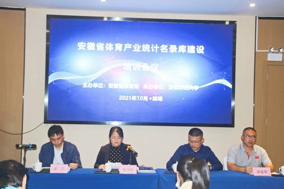 10月12至15日,由安徽省体育局主办、安徽财经大学承办的安徽省体育产业统计名录库建设培训会议在蚌埠举办。省体育局体育产业发展处处长朱雪梅,安徽财经大学体育产业研究院院长、省体育产业重点研究基地常务副主任姜同仁教授,半岛app官方在线入口体育教学部体育大数据研究中心主任宋述雄老师,全省16个地市体育系统产业统计负责人和操作员、安徽省体育产业重点研究基地研究团队成员参加了培训会。