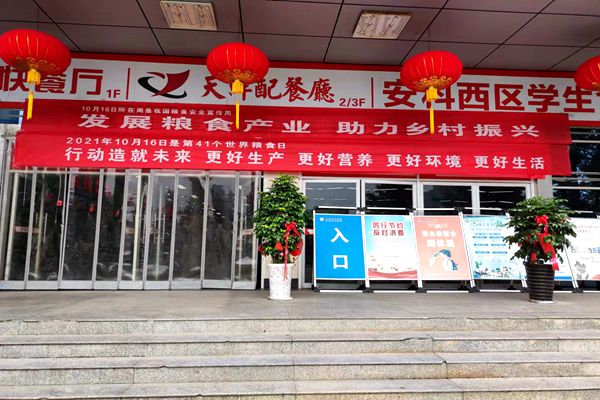 为认真落实习近平新时代中国特色社会主义思想,深入实施国家粮食安全战略和乡村振兴战略,建立健全粮食安全宣传教育长效机制,增强全校师生爱粮节粮意识,共筑国家粮食安全防线。10月15日,在第41个世界粮食日来临之际,我校在凤阳校区举行2021年世界粮食日和全国粮食安全宣传周活动。