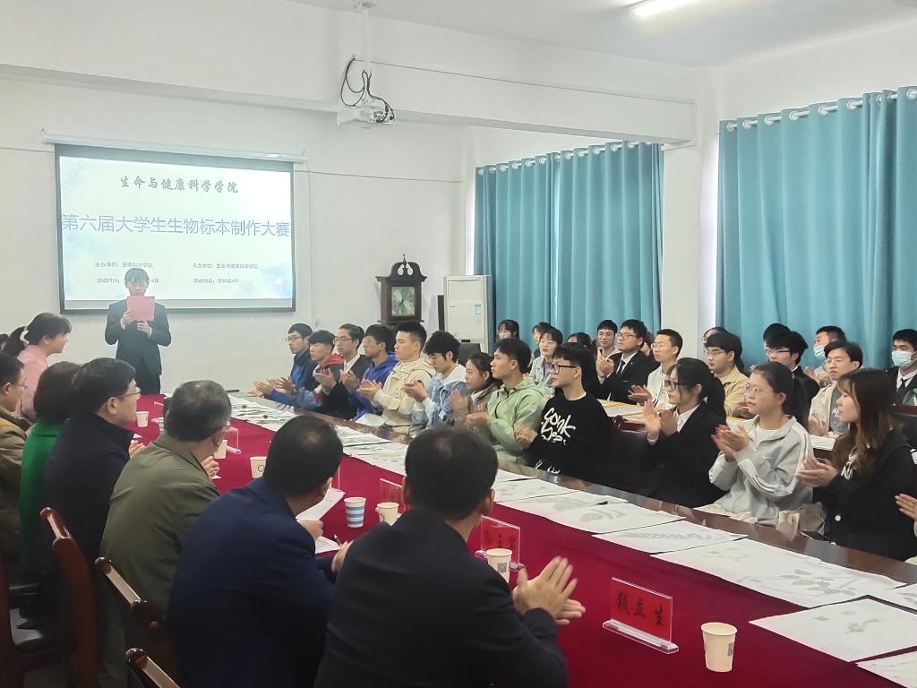 10月24日,2021年安徽省大学生生物标本制作大赛校内选拔赛在生命与健康科学学院会议室成功举办。本次大赛由半岛app官方在线入口教务处、创新创业学院主办,生命与健康科学学院承办。皖西学院刘昌利教授,蚌埠医学院吴华彰教授,我校教务处副处长、创新创业学院副院长高青海教授,我校生命与健康科学学院鲍方印教授、王玉良教授,担任本次比赛的评委。学院党委副书记、副院长(主持工作)孙玉军,副院长陈浩、钱立生参加本次活动。比赛由生命与健康科学学院学生会查道军同学主持。