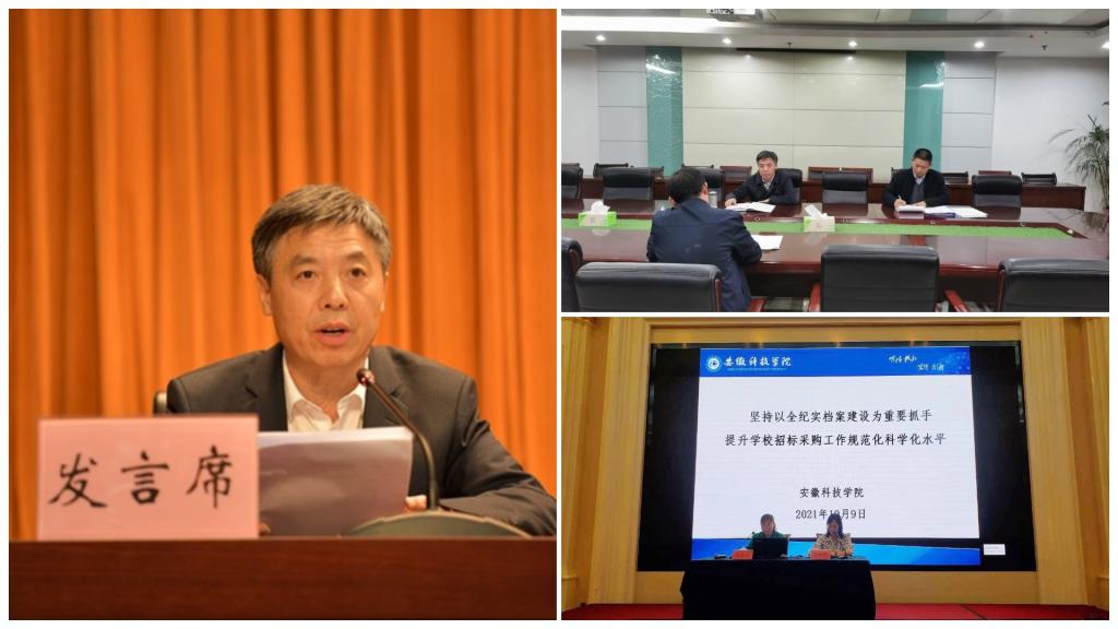 【综述】10月期间,学校开展党内政治监督谈话,加强对“一把手”和领导班子监督。根据安排,校党委书记蒋德勤和党委副书记、校长李震分别与基层党委(党总支)书记和二级学院党员院长开展了一对一谈话,其他校党委委员、党员副校长分别与相关负责同志开展了谈话;10月8日至9日,由安徽省教育厅主办的全省教育系统招标采购业务培训会在合肥召开,来自合肥工业大学、安徽大学、安徽师范大学等46所高校及省教育厅直属事业单位共100余人参加会议。我校国有资产管理处处长郑亚辉作为高校代表在培训会上作经验交流发言;10月20日,第26次全省高校党的建设工作会议暨高校党委书记读书班开班式在合肥举行,省委副书记程丽华出席会议并讲话,省委组织部、省委宣传部、省委教育工委负责同志出席,全省121所高校党委书记参加。校党委书记蒋德勤代表学校党委在会上作了题为《坚持以党的建设为引领,扎实推进学校事业高质量发展》的发言,受到与会领导和兄弟高校的好评。