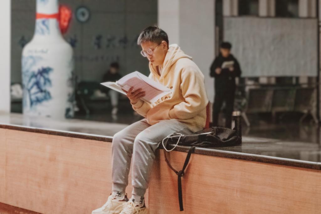 落叶纷飞,修竹在后。那一个个埋头深入学海的考研学子,听不见行人的脚步声和鸟儿的嘻笑声,只听见内心斗志昂扬的呐喊声!
