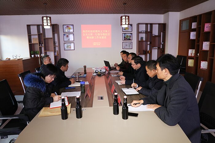 12月22日,省教科文卫体工会主席吴海明、经费审查委员会主任唐成、三级调研员李晓燕一行来校指导劳模创新工作室创建工作。校党委书记蒋德勤亲切会见吴海明一行,校党委委员、副校长黄远友陪同考察并主持劳模创新工作室创建工作汇报会。校工会主席汪洋,食品工程学院党委书记付光玺、院长杜传来,省级劳动模范吴晓伟等参加会议。