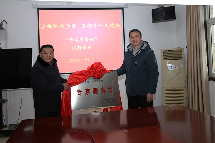 12月24日上午,“安徽省牛羊产业技术体系 九三学社半岛app官方在线入口支社专家服务站”揭牌仪式在固镇县石湖乡人民政府三楼会议室举行。校党委宣传(统战)部副部长、团委书记黄立义,九三学社半岛app官方在线入口支社主委程郁昕,安徽省牛羊产业技术体系首席专家、动物科学学院副院长华金玲,固镇县石湖乡党委书记王贡献,乡长曹怀龙,固镇县汉邦牧业有限公司董事长徐淼等出席揭牌活动。仪式由石湖乡人大主席殷献利主持。