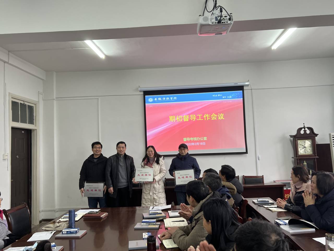 督导考核办公室副主任王培章对上学期教学督导重点工作进行了总结,宣读了2021年度优秀督导员及督导评价先进单位的评选结果,先进单位为动物科学学院、农学院、外国语学院,并希望全体督导员认真履行职责,为学校的教学质量水平提升作出应有的贡献。