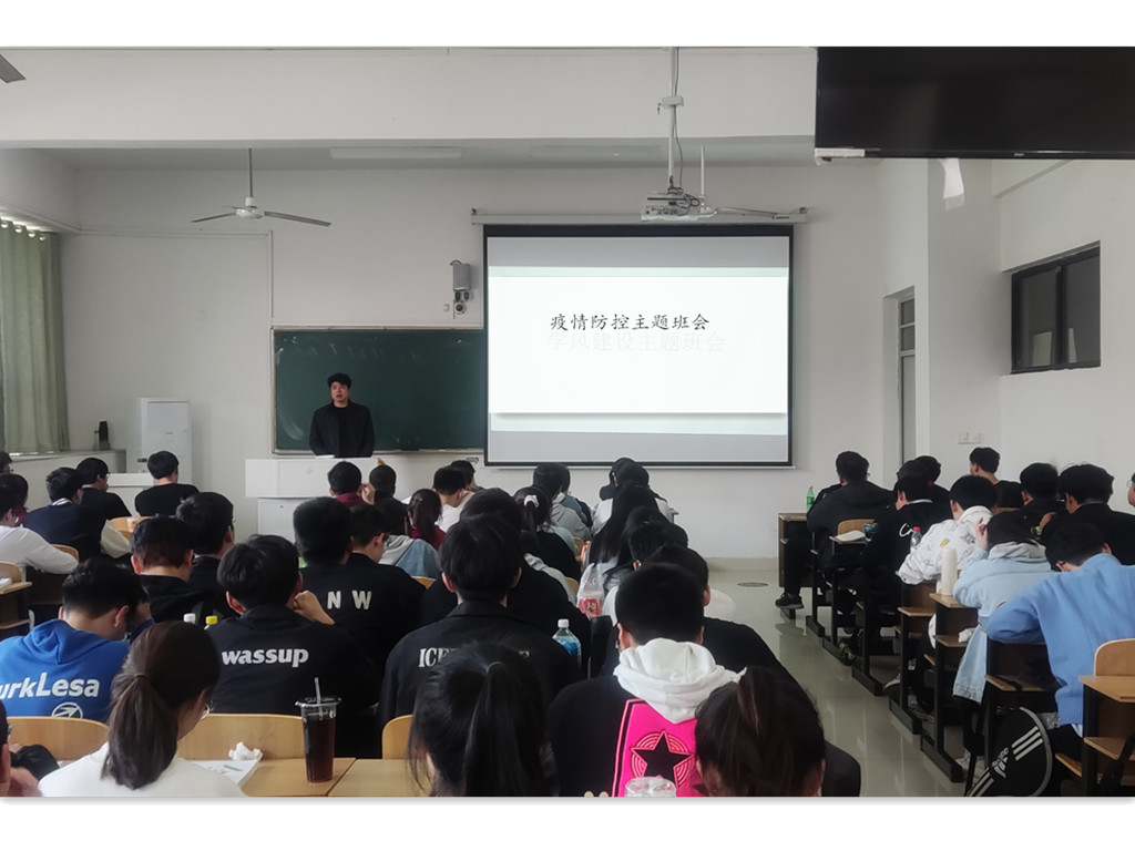 为确保清明假期封校期间学生的身心健康,按照学校相关要求,学院全体辅导员及时组织召开了节假期间安全教育主题班会,进一步向学生强调学校目前的疫情管控措施,要求所有学生务必克服麻痹思想、厌战情绪、侥幸心理、松劲心态,进一步坚定战胜疫情的决心和信心,严格遵守学校疫情防控管理规定,不到外卖摊点购物、尽量减少网购,同时积极参加学院组织的各类线上线下活动,把清明假期过得充实丰富。
