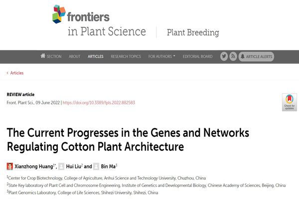 6月9日,我校农学院作物生物技术中心的黄先忠教授团队应邀在国际著名期刊Frontiers in Plant Science发表了题为“The Current Progresses in the Genes and Networks Regulating Cotton Plant Architecture”的综述文章。Frontiers in Plant Science期刊现位列JCR 1区(Q1)、中科院SCI生物大类和植物科学小类二区、TOP期刊,在植物科学和生物学等学科中,文章总引用次数排名全球第一,最新影响因子为5.753,在植物学领域期刊中处于领先地位。