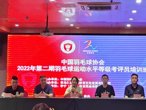 2022年7月10至15日,我校体育教学部孙文树和耿兴敏两位教师参加了中国羽毛球协会在青岛举办的2022年第二期运动水平等级评定考评员培训班,中国羽毛球协会发展部杨悦、原青岛羽游中心主任朱海林出席了开班仪式。奥运会冠军李雪芮,羽毛球运动等级标准编撰者田健、胡永强,青少儿羽毛球标准化教学体系编撰者周耶峰等担任本次培训班讲师。